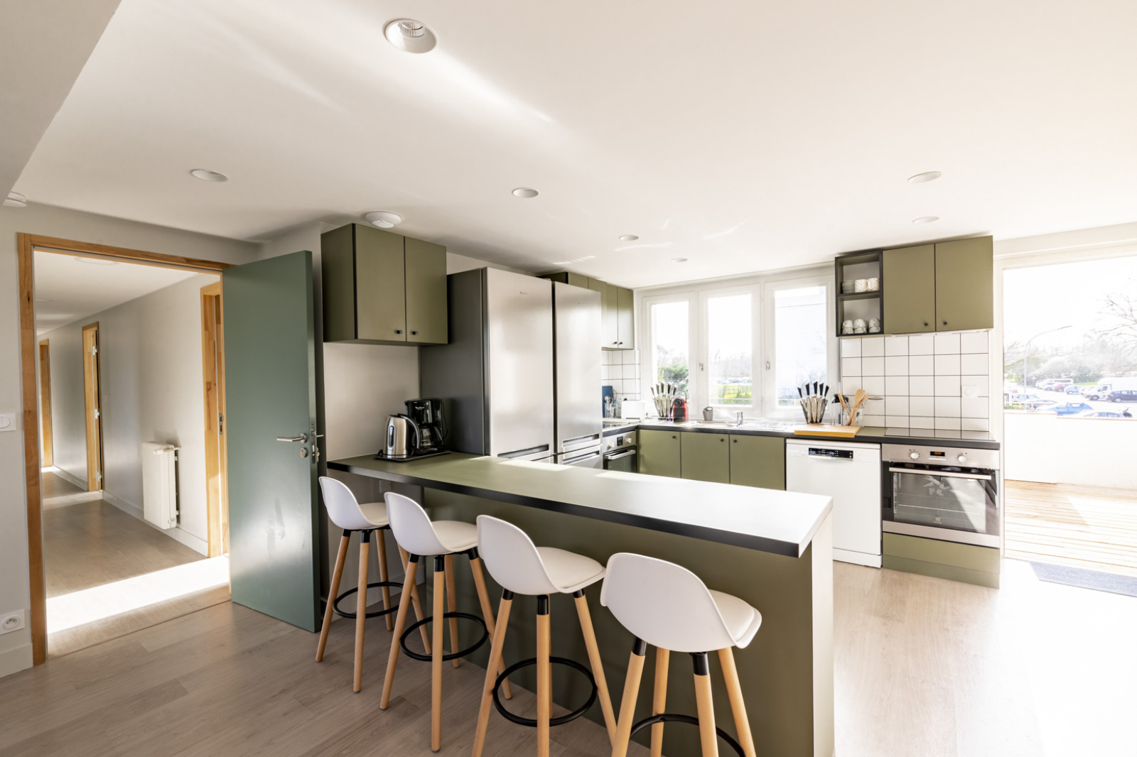 Profitez d'un équipement entièrement pensé pour la vie en communauté (2 frigos, 2 plaques de cuisson, machine à laver, sèche linge).