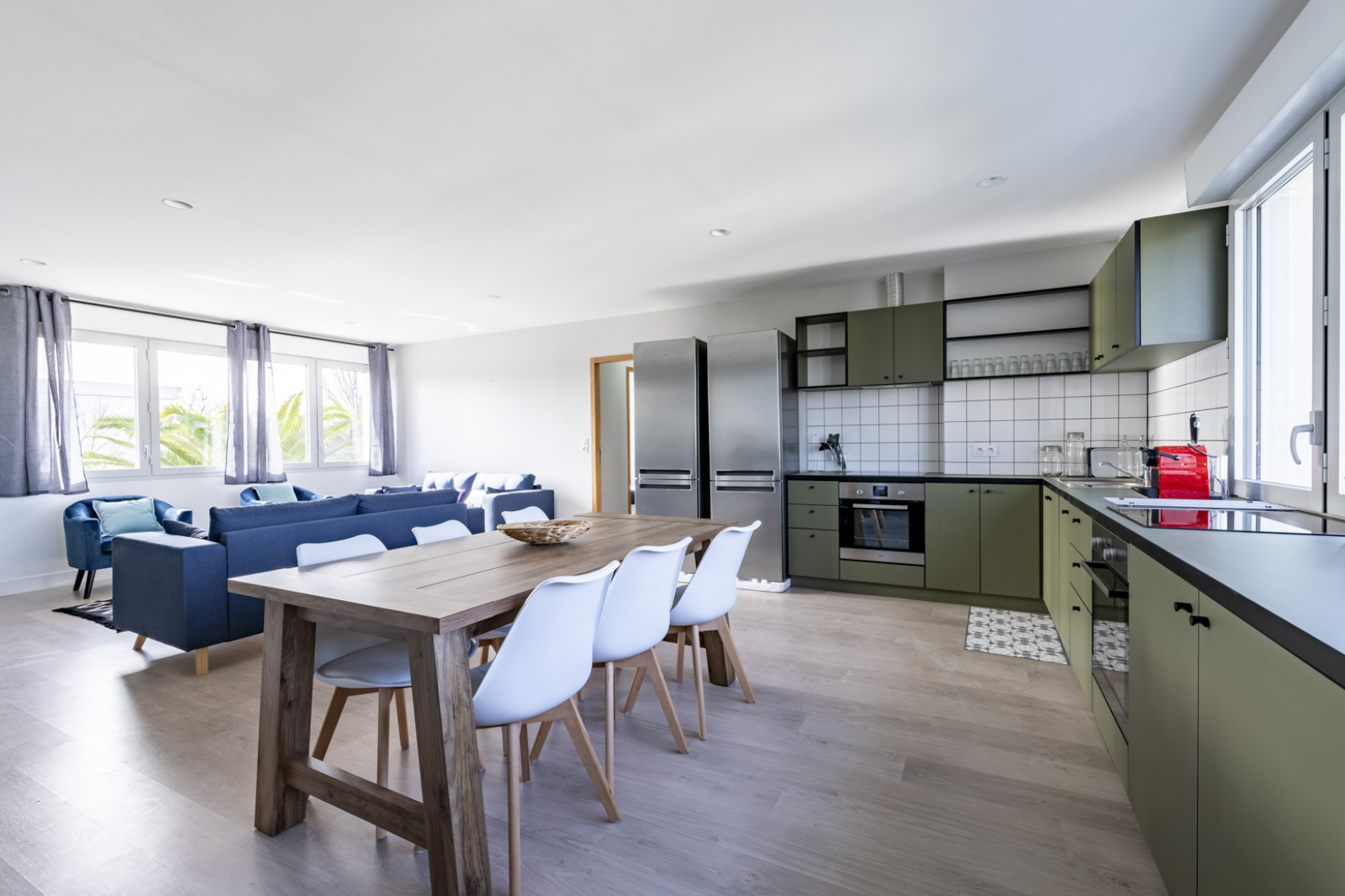 Au deuxième et dernier étage d'un immeuble entièrement rénové en 2020, magnifique colocation de 7 chambres, 4 salles d'eau agencées autour d'une immense et lumineuse pièce de vie traversante.