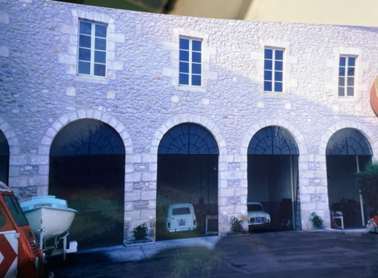 La propriété forme un U, de l'autre côté de la cour centrale un parking couvert , ancien atelier, jusque la louer a un professionnel de location de voiture et un local commercial avec vitrine qui lui peut être exploité ou revendu séparément.