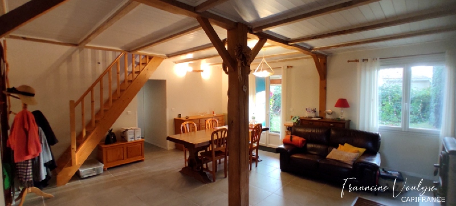 Situé sur un terrain clos et arboré de 826 M2, avec garage et dépendances.